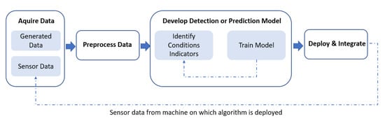 When planning a predictive maintenance project, a life cycle must be followed. Data science and machine learning constitute the process of structuring the solution of a problem using data. An example of predictive maintenance is shown in Figure 2 [5]: