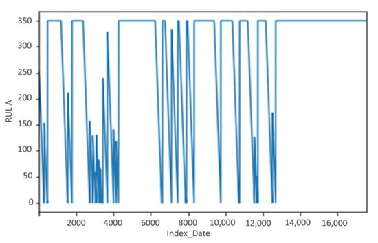 - RULA takes the value of “0” for all the records where we have failure, and we dice increment the values from 1 until the value n = 350, which represents 350 h before the arrival of the failure, and we replace the other records that remain with the value 350.