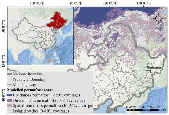 Distribution of permafrost in Northeast China and the project location of the study area.