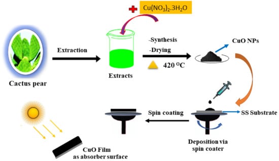 - Karthick, S.; Murugesan, S.; Suresh, S. Preparation and characterization of CuO nanostructures on copper substrate as selective solar absorbers. Mater. Chem. Phys. 2014, 143, 1209–1214. [Google Scholar] [CrossRef]