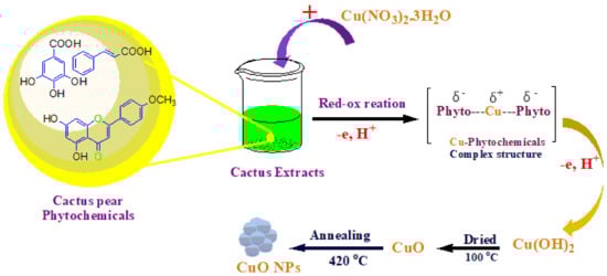 3.1. Possible Reaction Mechanism of Green Synthesis Cuo Nanoparticles