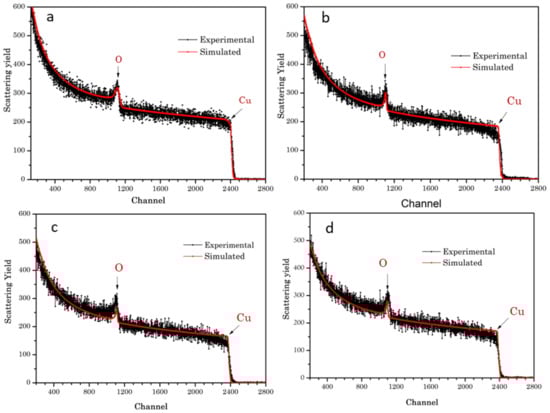 - Adeoye, A.E.; Ajenifuja, E.; Taleatu, B.; Fasasi, A. Rutherford backscattering spectrometry analysis and structural properties of thin films deposited by chemical spray pyrolysis. J. Mater. 2015, 2015, 1–9. [Google Scholar] [CrossRef]
