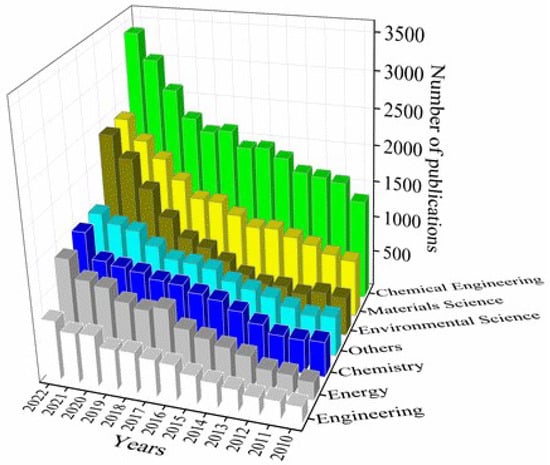 Evolution of the number of publications on zeolites obtained from the Web of Science database from 2010 to 2022.