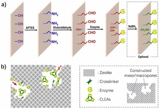 - Zhang, H.; Jiang, Z.; Xia, Q.; Zhou, D. Progress and Perspective of Enzyme Immobilization on Zeolite Crystal Materials. Biochem. Eng. J. 2021, 172, 108033. [Google Scholar] [CrossRef]
