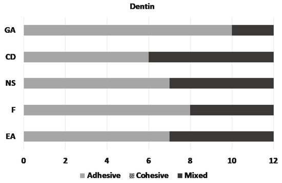 Distribution of the failure types on dentin.