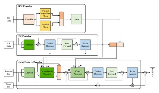 - To extract informative features from the satellite images and local sequences, we deploy the two-dimensional wavelet transform block and series decomposition block in the encoding stage. The former in the RSI encoder is capable of the frequency feature extraction of image signals to obtain cloud detailed information, while the latter in the LSI encoder conducts series decomposition to improve the learning capacity of temporal patterns.
