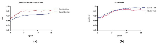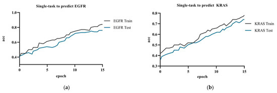 Experiment c: (a) single-task training in the ResNet network to predict EGFR gene; (b) single-task training in the ResNet network to predict KRAS gene.