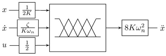 To allow the adjustments of and , input and output scaling factors will be used. For this purpose, the universe of discourse will be left normalised to the interval [−1, 1] (see Figure 10). For the output, the centre of gravity will be and will be multiplied by the maximum value of the output. In this case, it becomes . The input variable x, which is within the interval [−2K, 2K], will be normalised to , and then the variable will be normalised to . Next, u will be normalised to .