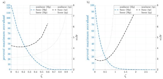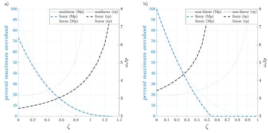 Secondly, the specifications of the time-domain features, such as overshoot percentage and peak time, were graphed and compared with the second-order model features. The percentage of Mp was determined to reach zero when the damping ratio is equal to or greater than one. The percentage of Mp reaches zero when the damping ratio is similar to or greater than one. In both cases, this occurs due to the linguistic hedge of concentration in response to a step input and dilation in response to a step-down input. In these cases, one is shorter than the peak time in second-order linear systems.