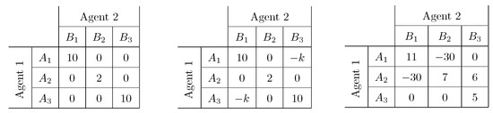 Considering the problem having the penalty reward structure shown in Figure 4, the uncoordinated selection may be penalized. In these cases, the explorations on the action space make these actions unfavorable since their expected values are very low, due to the high penalty values.