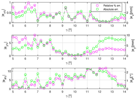 | Absolute error components, [mm, mm, °] | |