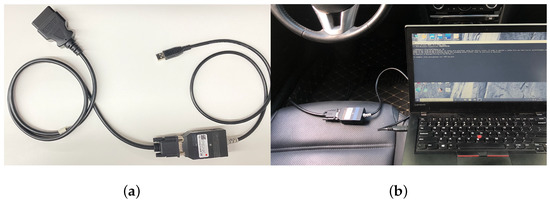 - OBD2 Diagnostic Cable Interface Scanner. Available online: https://www.amazon.com/Universal-Diagnostic-Interface-Keenso-Connector/dp/B07MNX424C/ref=sr_1_5?crid=SEHIDIO9OCCC&keywords=obd2+connector+for+laptop&qid=1669830823&sprefix=obd2+connector%2Caps%2C572&sr=8-5 (accessed on 1 December 2022).