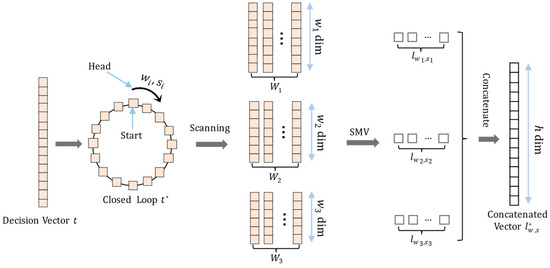 As shown in Figure 3, for a sample from the decision sets, considering that each element of should have the same weight in the scanning process, is spliced back and forth to form a closed loop . The closed loop is scanned by the sliding window of size ( is smaller than the number of combinations) and stride . In one scanning process, a -dimensional scanned vector is produced by sliding the window for one stride, and the scanning process stops when the head of the sliding window slides a full circle in . One scanning process produces one scanned set with several scanned vectors. To each scanned vector, there is a simple majority vote of its element; all the voted elements are spliced together to generate the scanned features . By setting up three different sizes of sliding windows and strides , all the generated scanned features in the three scanning process can be stitched together to compose the final concatenated vector , where is the dimension of the concatenated vector.