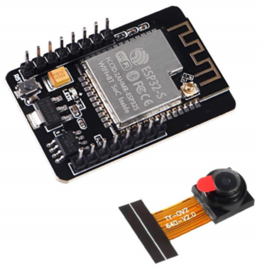 The camera nodes consist of an ESP32-CAM board with Wi-Fi and Bluetooth and an OV2640 camera (Figure 6). This module contains a microSD card slot that serves as a support for the storage of images captured with the camera.