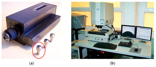 Experimental tests of the diamond sliding burnishing process were carried out on the stand shown in Figure 3. The NEF 400 CNC machining center with the CNC 3D Fanuc 210 is the control, manufactured by the German GILDEMEISTER Drehmaschinen GmbH from Bielefeld, DMG, was used for the tests. The device is a multifunctional machining center. It ensures a high quality and dimensionality of products.