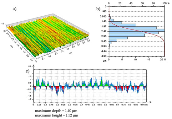 It has been shown in many publications that burnishing will result in favorable changes in the geometric structure of the surface through the plastic deformation of micro-unevenness and shaping the structure with flat tops with a high load-bearing capacity [32,42,43,44,45].