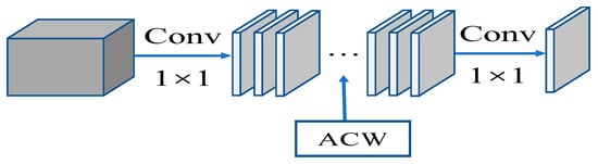 In the deep neural network, due to the deepening of the network, the feature information will inevitably become more abstract. Therefore, in the multi-channel network design, this paper selects a 1 × 1 convolution kernel to construct a complete feature extraction network to maximize the possibility of retaining certain input information. In addition, the channel weights are added by design to improve the feature extraction in AuxBranch, as shown in Figure 6.