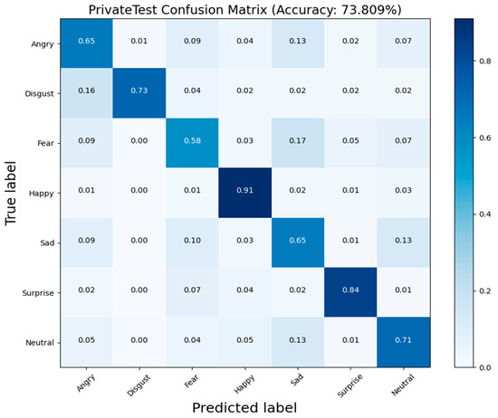 Facial expressions are an important way for humans to express their emotional states. By analyzing and processing learners’ facial expressions, the emotional states of learners can be identified [1]. With the improvement of computer computing power and the advancement of neural networks, machine translation, behavior recognition and other technologies, artificial intelligence has made positive progress, starting from simple vision and hearing, and has now entered the stage of human–computer interaction [2]. The automatic recognition of human emotional states is an important issue in human–computer interactions [3,4], and the research on emotional computing has also entered a new journey.