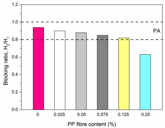 Variation of blocking ratio with different PP fibre volume content.