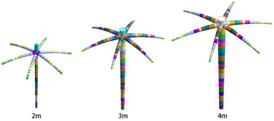 Figure 3. 3D root system model of living elm stump with different tap root lengths.