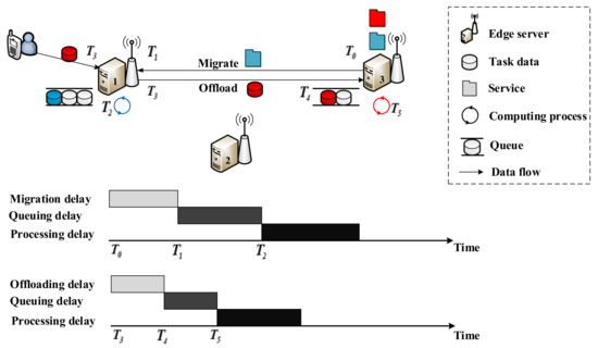 - Parallel service migration process and task offloading process: the total transmission delay is .