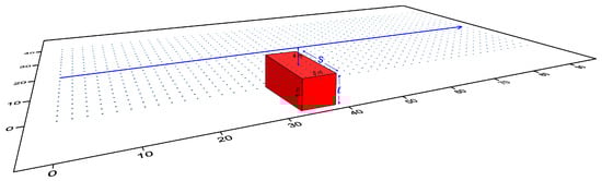 For the 3D forward modeling, RES3DMOD software was used [47], considering the finite element method and a grid of rectangular meshes in which 48 × 21 electrodes space at 2 m in the x and y directions, respectively, were considered. For each designed model, the apparent resistivity measurements related to a 3D data set were calculated. The 3D electrical resistivity survey was simulated while considering the inline dipole-dipole array, with the dipole length a ranging from 1 to 12 times the electrode spacing and the dipole-dipole distance n ranging from 1 to 12 times the electrode spacing. This array configuration allows a good resolution and reliability for the survey according to a not-too-long acquisition time [7,48,49]. The dipole-dipole array allows, thanks to modern multi-channel instruments, simultaneously acquiring many voltage measures with the same current dipole input, thus allowing short acquisition times and, consequently, a large number of measures which are difficult to acquire in reasonable times using Wenner or Wenner–Schlumberger arrays.