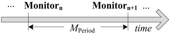 According to the MAPE-K architecture, the Monitor process is used to periodically detect changes within the self-adaptive software application logic, and the monitoring period is defined as follows.