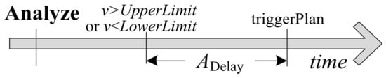 (Triggering-Delay Time ADelay). The Triggering-Delay Time refers to the time-interval of the Analyze process between when a monitoring variable is out of limits and when the subsequent Plan process is finally triggered. It is represented as ADelay, as shown in Figure 4.