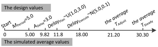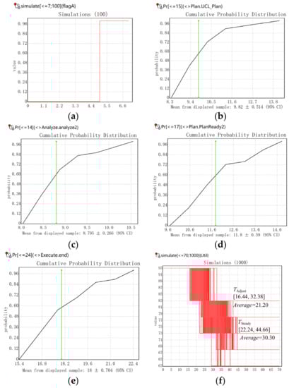 The modeling template for Plan process and the uncertainty delay time DelayPlan is shown in Figure 8c. This process is triggered by flagP, and the concrete planning processes are implemented with two functions of plan_LCL( ) and plan_UCL( ), which need customization according to concrete applications. The uncertainty delay time is implemented with the function of delay(type, par1, par2), the parameters of which needs further instantiation.