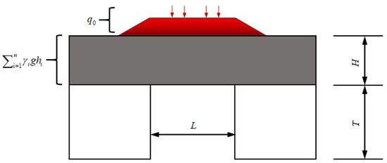 In Formula (2), H is the thickness of the roof; is the weight of the overlying rock mass; g is the gravitational acceleration; is the thickness of each layer of rock mass; is the traffic load; and L is the coal pillar spacing.
