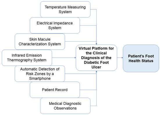 Figure 4 shows the diagram of the virtual platform for diabetic foot, with the incorporation of this platform to the health sector intended to help the physician to keep track of the feet of the patient with diabetes, as well as the treatment applied in each medical consultation. The virtual platform works like a general platform for all the information that each one the systems gives; with this a single record is created to find the patient’s foot health status [24].