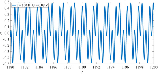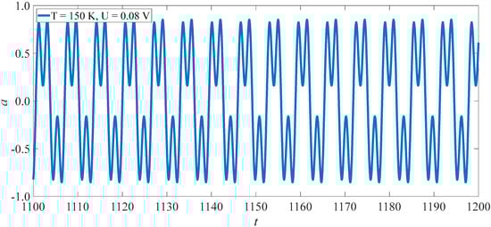 Finally. The numerical simulations of Equation (9) are operated using the Runge–Kutta method for the first mode with the initial value and the second mode with the initial value . These simulations show that the analytical solutions are accurate, as shown in Figure 15, Figure 16, Figure 17 and Figure 18.