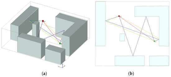 Ray-tracing simulation examples: (a) 3D ray-tracing; (b) 2D ray-tracing.