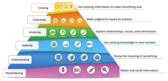 - Churches, A. Bloom’s digital taxonomy. In Bloom’s Revised Digital Taxonomy Map; Tech & Learning: Washington, DC, USA, 2008; pp. 6–8. [Google Scholar]