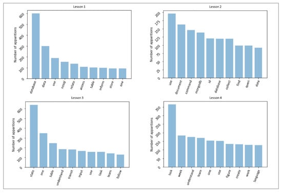 Top 10 most frequent words in each lesson.