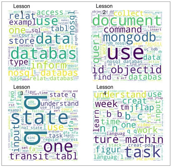 - Ferreira-Mello, R.; André, M.; Pinheiro, A.; Costa, E.; Romero, C. Text mining in education. WIREs Data Min. Knowl. Discov. 2019, 9, e1332. [Google Scholar] [CrossRef]