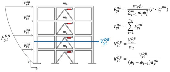 Graphical representation of the procedure for distributing the properties of the damped braces at the stories of the frame.