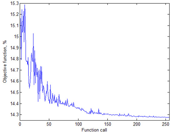 Change in the value of the objective function defined by Equation (1) in the course of optimization.