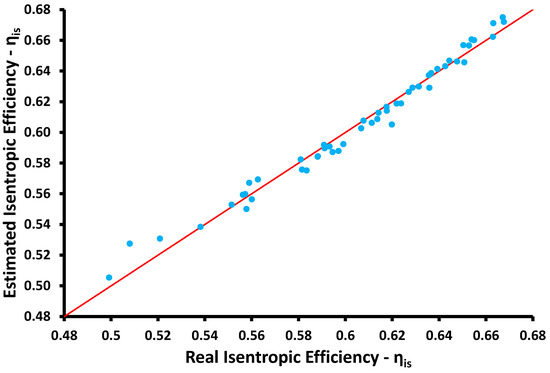 Comparison of the isentropic efficiency between the estimated value with the approximation formula.