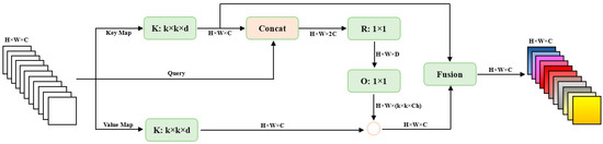 The k value as a key parameter can be adjusted to determine the range of interaction between channels by adjusting its own size, and the range of interaction increases with the increase in channel dimension. Assuming that the interaction range, k, is proportional to the channel dimension, C, the relationship between them can be extended to a nonlinear one, as in the formula: