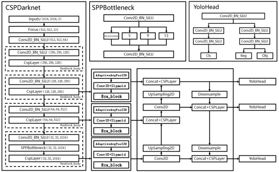 Based on YOLOX, this paper uses the effective channel attention module of the EcaNet (effective channel attention for deep convolutional neural networks) [32] deep convolution neural network. Different from the above attention mechanism, the purpose of ECA is to learn effective attention channels while reducing model complexity.