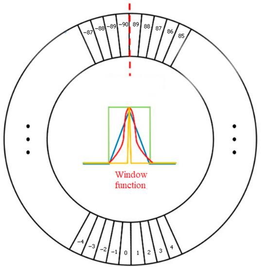 Among them, is a window function, and its four main characteristics are periodicity: ,, ; symmetry: , |ε| < r; maximum value: ; and monotonicity: , |ς| < |ε| < r. The r represents the radius of and θ represents the angle of the current bounding box. Due to the setting of the window function, , the network model can calculate the angular distance between the predicted tag and the real tag, so that the loss value of the predicted value decreases with the improvement of the prediction result. The problem of angular periodicity is solved by the periodicity of . The CSL is shown in Figure 5.