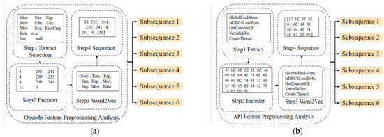 Feature pre-processing. They should be listed as: (a) Opcode feature preprocessing; (b) Api feature pre-processing.