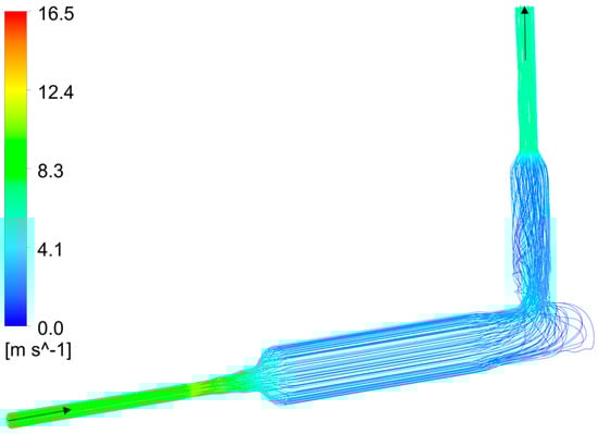 Velocity streamline of the coolant.