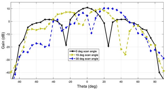 4.3. Measured 30° Off-Broadside Radiation Pattern