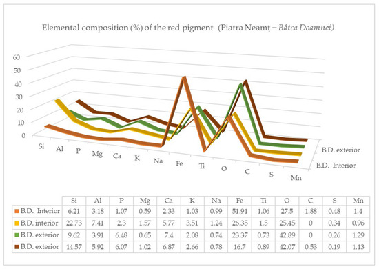 The elemental composition of the red pigment from the Piatra Neamt—Bâtca Doamnei settlement.