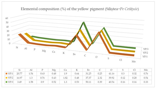 The elemental composition of the yellow pigment from the Siliștea—Pe Cetățuie settlement.