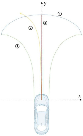 As was previously indicated, the majority of the hazards that the vehicle encounters come from factors that are dangerous up front and that also fall within the driver’s operable range while driving on the road. To define this range, we propose a driving operation risk field boundary, as illustrated in Figure 3.