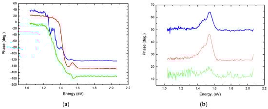 The phase spectra course may differ for different samples and frequencies. Still, the most important are the changes (inflection points) at which these changes occur: they indicate additional photothermal signal sources and the energetic position of the defects on the surface.