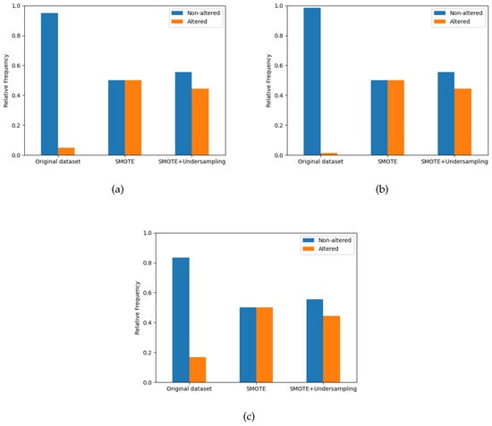 On the other hand, the CW and DW datasets are more extensive, so removing data points is less critical because there is more information regarding the majority class. Even though the oversampling techniques improved the model’s performance, some flaws must be considered. SMOTE generates a lot of noisy artificial samples in the feature space, which can increase the number of data points in the boundaries between the two classes, confusing the classification algorithm. In addition, the increase in samples may result in overfitting the model.